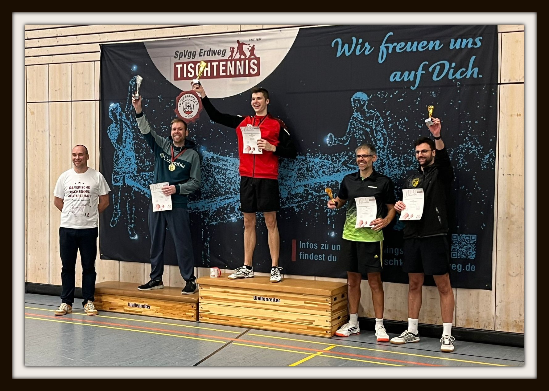 Unter 48 qualifizierten Teilnehmern kämpfte er sich bis Endspiel vor. Hier scheiterte er zwar im fünften Satz, doch immerhin stand die Bayerische Vizemeisterschaft zu Buche. Sogar auf dem Treppchen ganz oben stand der Spitzenspieler des B-Bezirksklassisten aus dem Kreis Bayreuth im Doppel mit Jörg Ilchmann vom TV Schwürbitz.